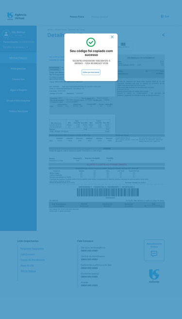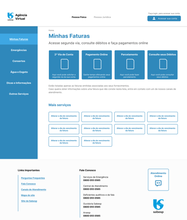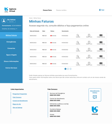 Defini um fluxo de 6 telas como principal resolução de dor, com hierarquia clara e sistema de cores da SABESP renovado. Ação principal sempre em destaque, informações secundárias acessíveis e melhor legibilidade
