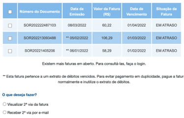 Lista sem diferenciação de status, informações técnicas em excesso e muitos passos para chegar à fatura desejada.